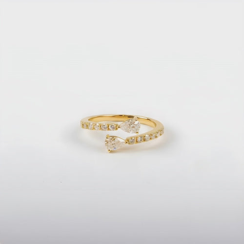 Perfect Pear ring set with two pear and brilliant cut diamonds, mounted in 18ct Yellow Gold