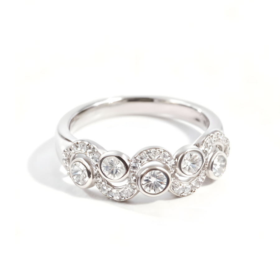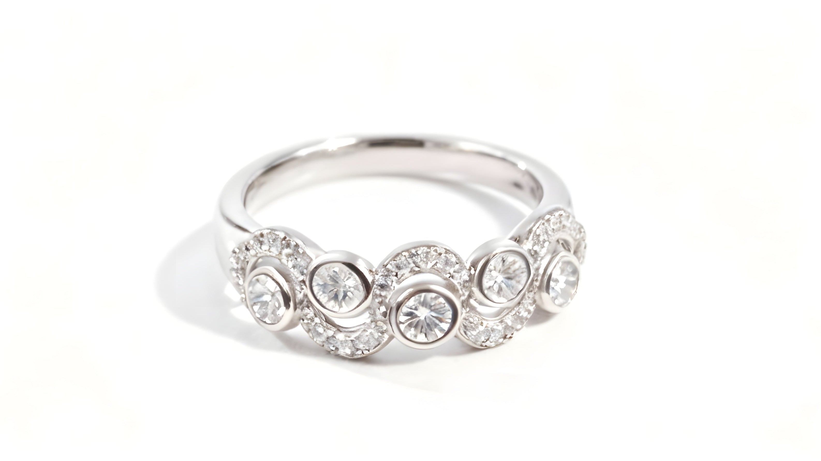 Each piece features fluid, circular forms that shimmer with brilliance, a contemporary expression of harmony, balance, and timeless elegance.